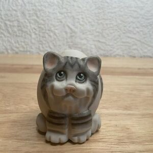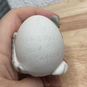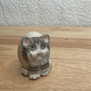 Allyson Nagel Rare Egg Shaped Porcelain Artist Signed Cat Figurine Gray/White 2"