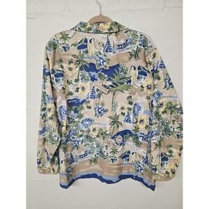 Allyson Whitmore Weekend 3X Tropical Button Down Jacket Brown Blue Green