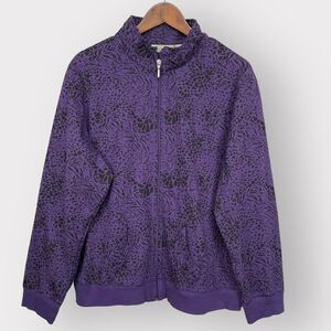 Allyson Whitmore Weekend Full Zip Jacket Women Size 1X Purple Animal Print
