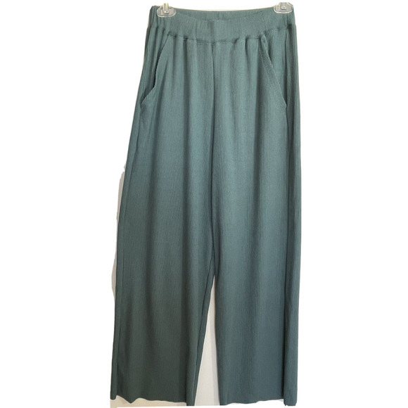 Alma Design Wide Leg Cropped Pants Size L Pull on in Green Pockets