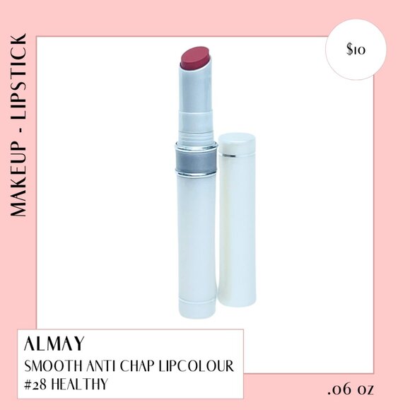 Almay Smooth Anti Chap Lipcolour #28 Healthy offers long-lasting color while keeping your lips protected and moisturized. Formulated with an anti-chap complex infused with vitamins and collagen, it helps prevent dryness and chapping, leaving your lips feeling soft and comfortable all day. With SPF 25, it also provides sun protection, making it perfect for everyday wear. This hypoallergenic, fragrance-free lip color is clinically tested by dermatologists and designed to be non-irritating, ensuring a smooth, irritation-free application without drying or caking. Size: 0.06 oz. NWT- Excellent Condition.