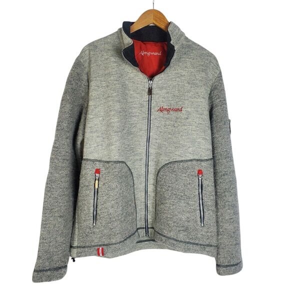 Almgwand Full Zip 100% Wool Jacket Mens GER 52 US L/XL Gray Elbow Patches READ