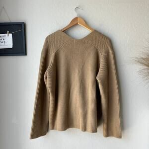 Almina Concept Sweater Camel Tan Knit Wool V-Neck Pullover Sweater Size Large