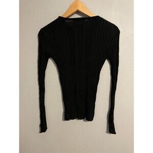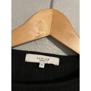 Almina Concept Womens Sweater Small Black Ribbed Long Sleeve Lettuce Hem Modern