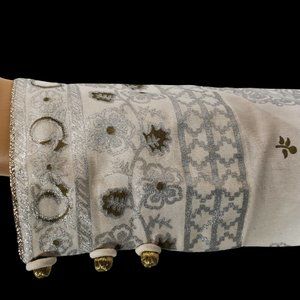 2. 100% Cotton Material Off-White Color Cigarette Pants with Fancy Paicha Designed with Thread Design, Shiny Gold Buttons, and Silver lace