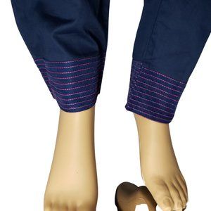 2. Cigarette-Style Cambric Material Navy Blue Pants with Stitched thread design on Paicha