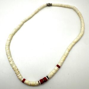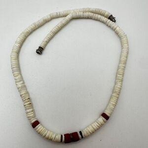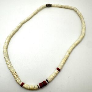 The necklace is just shy of being 16", has a silver toned barrel clasp. The center beads are about 6mm and the rest are about 5mm thick.