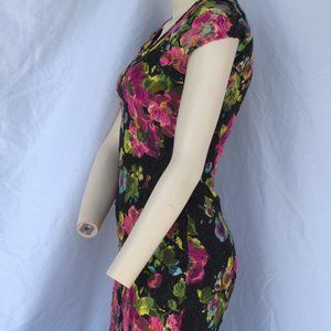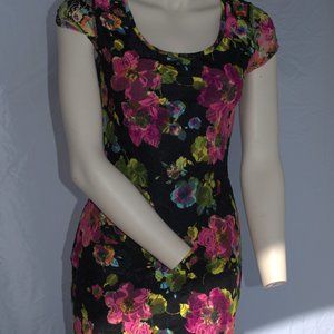Almost Famous dress. Multi-color, floral. Size M. Great condition, no imperfections. Machine wash cold. Amazing with hot pink heels, comes slightly above the knee on 5' 2". Form-fitting and very light and comfortable.