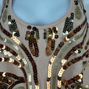 Almost Famous Beige Tank Top With Sequins Womens Large Racerback Scoop Neck