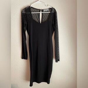 Almost Famous Black Dress with Sheer Long Sleeves size L