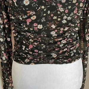 Almost Famous Black Floral Long Sleeve Crop Top With Built-in Bra