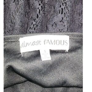 Almost Famous Black Lace Lined Sleeveless Romper Sz S. This cute romper has a rounded neck in front and ties in back around neck. Excellent condition.