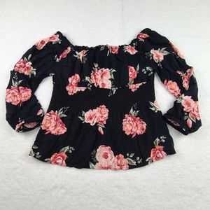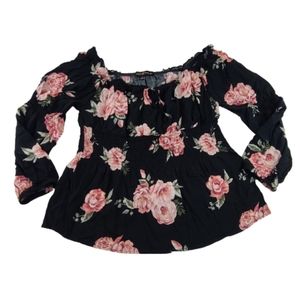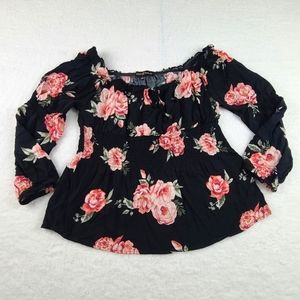 Almost Famous Black Ruffle Off the Shoulder Top Rayon Blouse Size Large