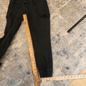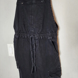 Almost Famous Black Stretch Denim Jogger Cargo Overalls. Size Large