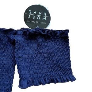 Almost Famous Blue Smocked Off Shoulder Crop Top Size L Boho 90's Y2K