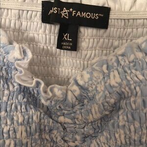 Almost Famous Blue and Silver Puff Sleeve Crop Blouse