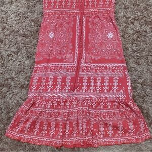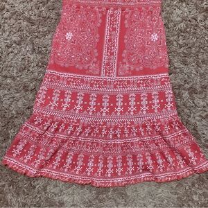 Almost Famous Brand Hippie Boho Bohemian Tropical Beach Coconut Girl Aesthetic Coral Red Color and Floral White Short Sleeve Mid Length Babydoll Dress with Beaded Tied Detail. Good condition- some wear. Size Small.