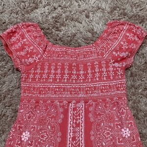 Almost Famous Boho Hippie Coral Short Sleeve Mid Length Babydoll Dress Size S