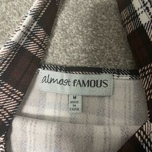 Chic plaid design. Rich brown and crisp white. Crafted by Almost Famous.