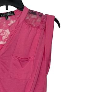 Almost Famous Button Up Top Size Large Pink With Lace Womens Sleeveless