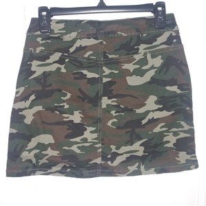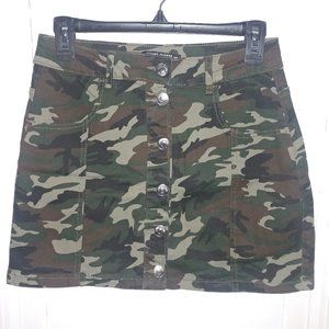 Almost Famous: Camo Print High Rise Button Front Denim Mini Skirt - JR Size 7