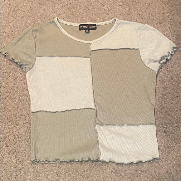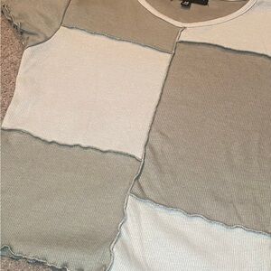 Trendy colorblock design. Soft fabric. Ideal for everyday wear. cream and grayish/green color.