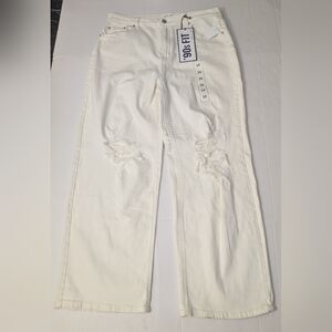 Chic white jeans with stylish distressing. Perfect for casual wear.