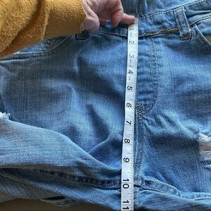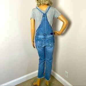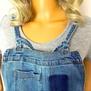 Almost Famous Distressed Cropped Overalls – Blue, Size 7