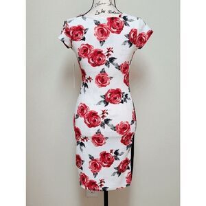 🌹 Almost Famous Framed Wrap Front Colorblock Floral Rose Print Dress SIZE S NWT