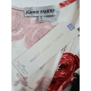 Gorgeous dress, has red roses 🌹 with black trim. Show off your flirty side with this Almost Famous floral Liverpool frame dress!