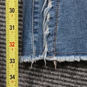 Rise/Inseam: Approx. 33" inseam (see tape photo); mid/high rise