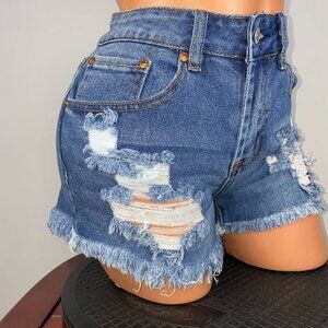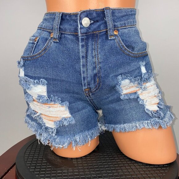 Almost Famous Juniors 3 Distressed Denim Fringe Hem Shorts Boho Festival Summer