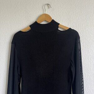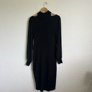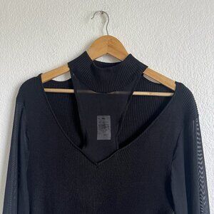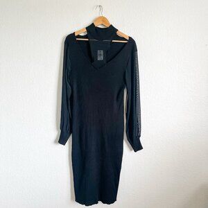 Almost Famous Juniors 3X Black Sheer Long Sleeve Ribbed Bodycon Midi Dress