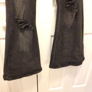 Almost Famous Juniors Black Wash Distressed Flared Leg Stretch Jeans Size 9. Excellent condition with no stains. From smoke free home.