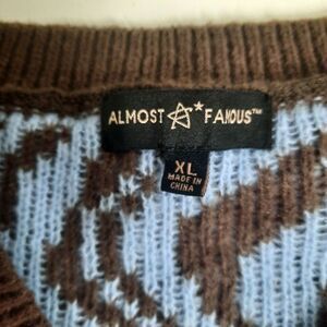 Almost Famous Knit Sweater Vest Blue Brown Size XL