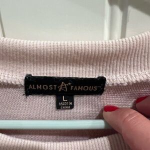 Chic pink ribbed sweater by Almost Famous. Ideal for a stylish and cozy outfit.
