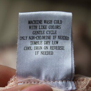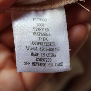 The size tag has been removed, but the shirt seems to be a large, see measurements below. Great for casual wear, business casual, work wear, summer, spring and more! There is a flattering key hole at the back collar. Gentle pleating where the liner begins and slight frill for a feminine touch. The material contains some spandex, so it is slightly stretchy.