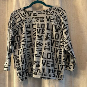 Almost Famous Light Sweater Size L. “Love” and “Live” Graphics in Gray and Black