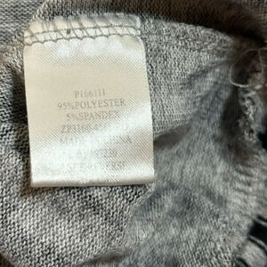 Almost Famous Lightweight Sweater, Misses Size L. Gray and black with LOVE and LIVE lettering. Long sleeve. Scoops neck.