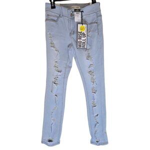 Almost Famous Mid Rise Distressed Light Wash Roll Up Skinny Jeans Size 7 Womens