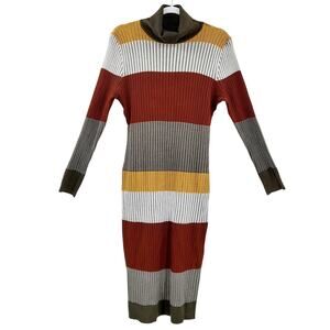 Almost Famous Multicolor Striped Bodycon Maxi Turtleneck Dress