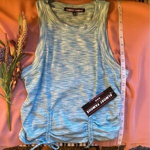 Almost Famous New Size XL Tank Top Blue Cameo Pastel Knit Sleeveless Tie Details