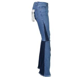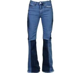 Almost Famous Patchwork Flare Jeans Blue Patched High Rise Wide Retro 70s Size 0