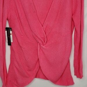 NWT Almost Famous Pink Sweater Size 3X. Soft V-neck pullover sweater with a twist detail in the back.