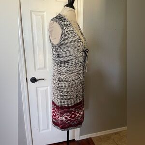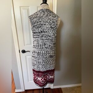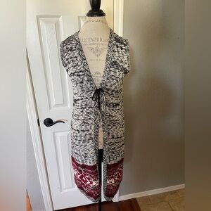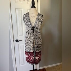 Almost Famous Red Black White Long Sleeveless Cardigan Size Large