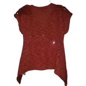 Almost Famous Red Orange Crochet Knit Tee XS Boho Summer Top, Lightweight Casual