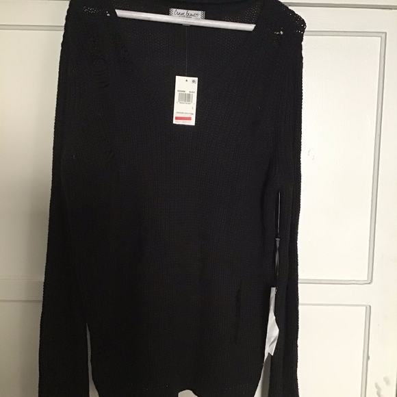 Crave Frame by Almost Famous ripped sweater in front (holes are part of design) with choker style neck.
