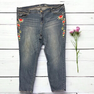 Almost Famous Roll up jeans. Embroidery floral design. Excellent condition. Plus size
