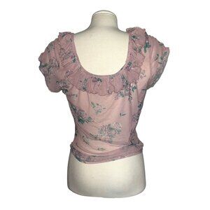 • Boho Cottage Core Pink Sheer Floral Blouse