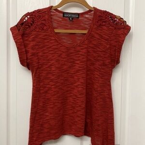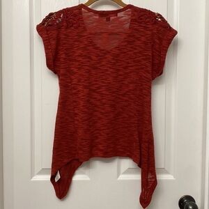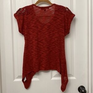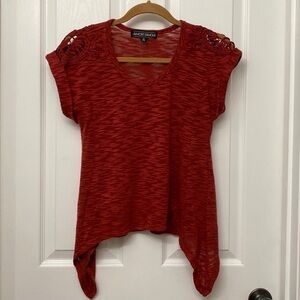 Almost Famous Short Sleeve Asymmetrical Hem Lace Cut Out Shirt XS